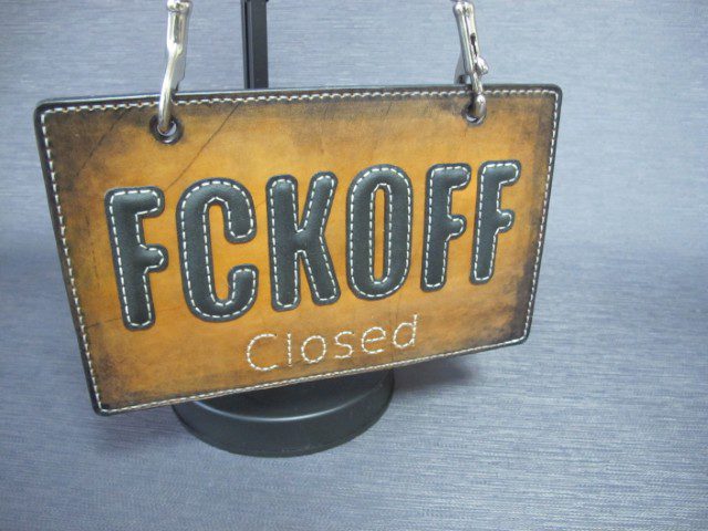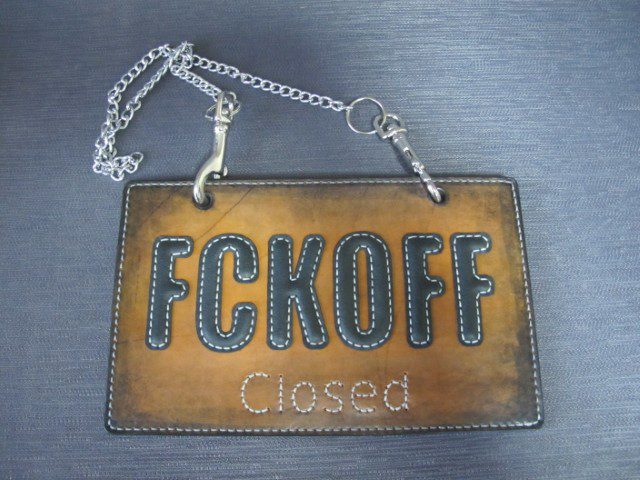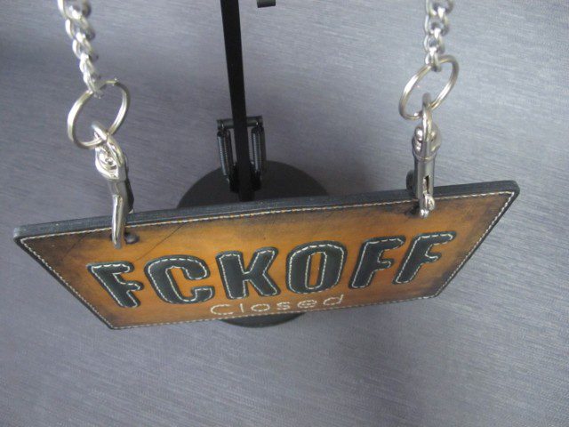One side says “FCKOFF” with “closed” underneath. The other? “#ZFG” with “open” underneath. It’s fun, cheeky, and unapologetically Kiwi.